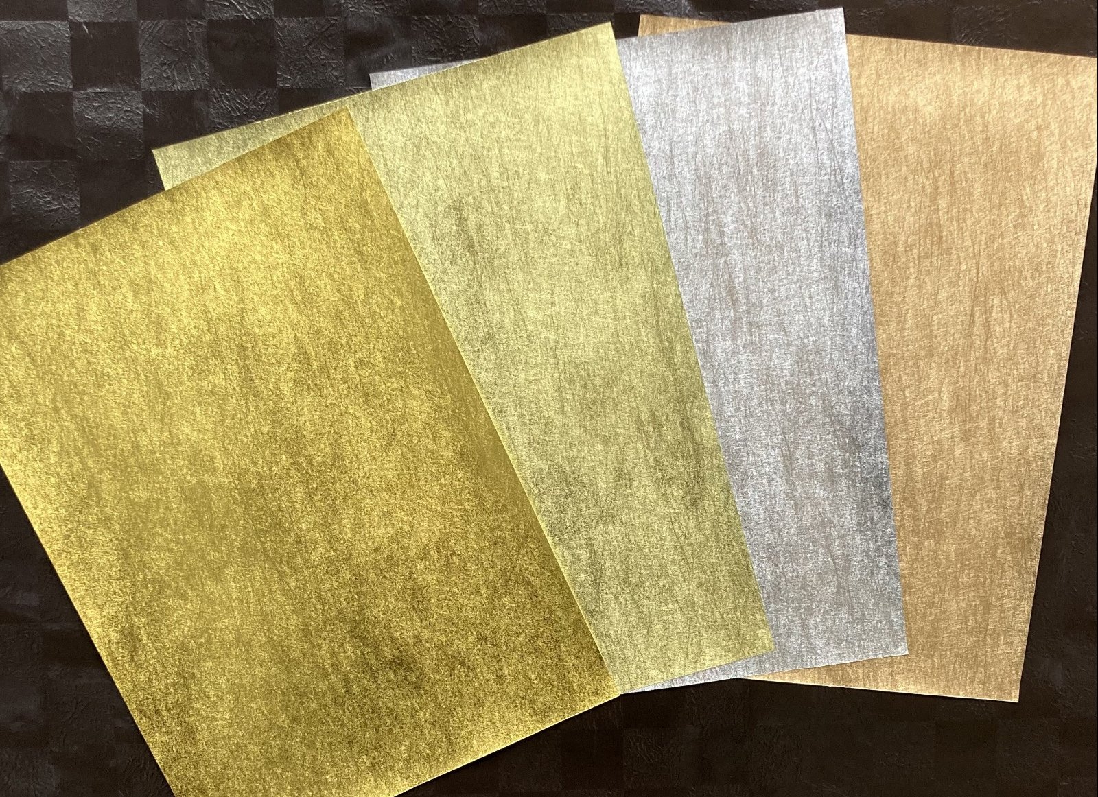 商業印刷適性に優れており、商品の顔となるパッケージに永年ご愛顧をいただいている金銀紙です。アルミ蒸着紙に独自のエンボス加工を施すことにより、和紙のような質感と立体感のあるメタリック模様を生み出しました。御社の商品をお買い求められるお客様に、鮮烈な印象をあたえPRします。